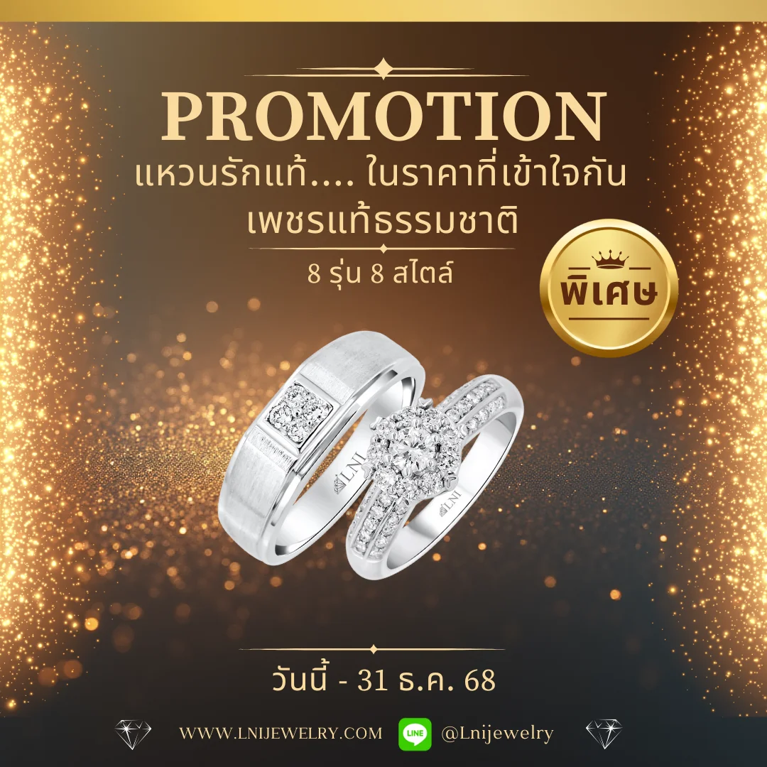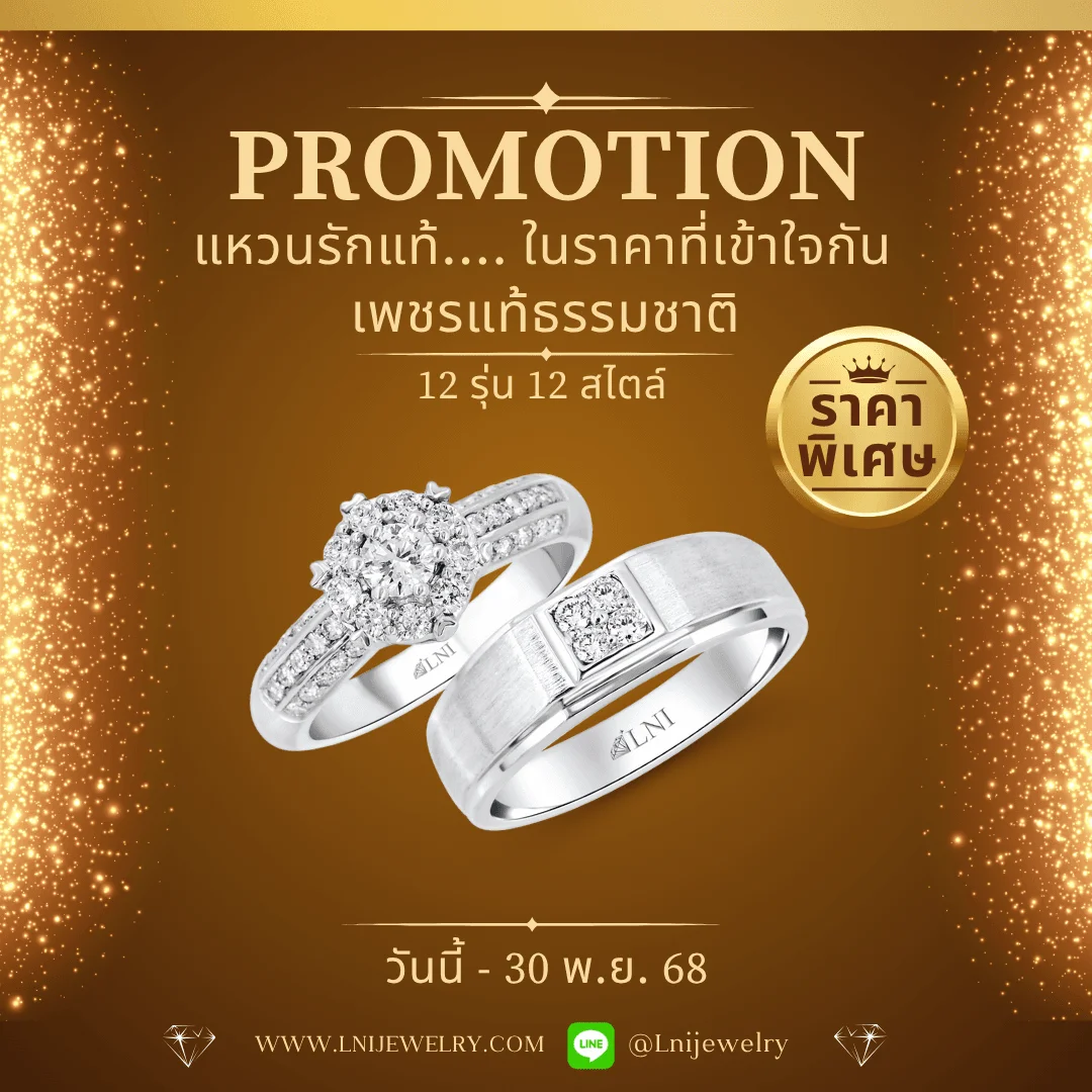 แอลเอ็นไอ จิวเวลรี่ จำหน่ายเครื่องประดับเพชรแท้ธรรมชาติ แหวนแต่งงาน แหวนหมั้น แหวนคู่ ชิ้นงานปราณีต งดงาม ในราคาสุดคุ้ม ประสบการณ์รุ่นสู่รุ่น มากกว่า 50 ปี