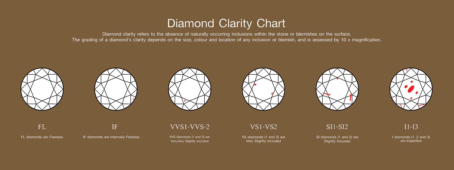 ระดับความสะอาดของเพชร ตามมาตรฐานของสถาบัน GIA จะแบ่งได้เป็น 6 แบบ ดังนี้