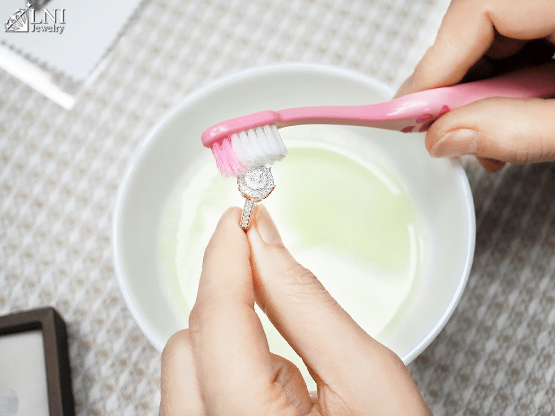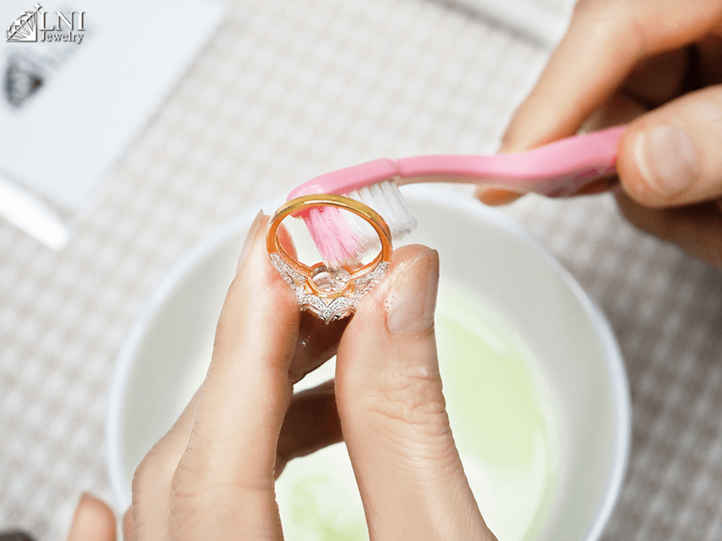 - เตรียมอุปกรณ์: น้ำยาล้างจาน น้ำสะอาด แปรงสีฟันขนอ่อน ผ้าเช็ดเครื่องประดับ และไดร์เป่าผม