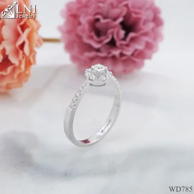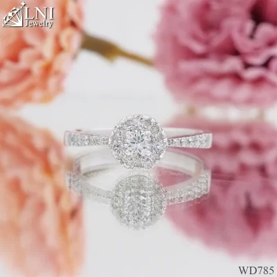 เพชรแท้ : เม็ดกลาง 0.10 กะรัต ล้อม 0.21 กะรัต